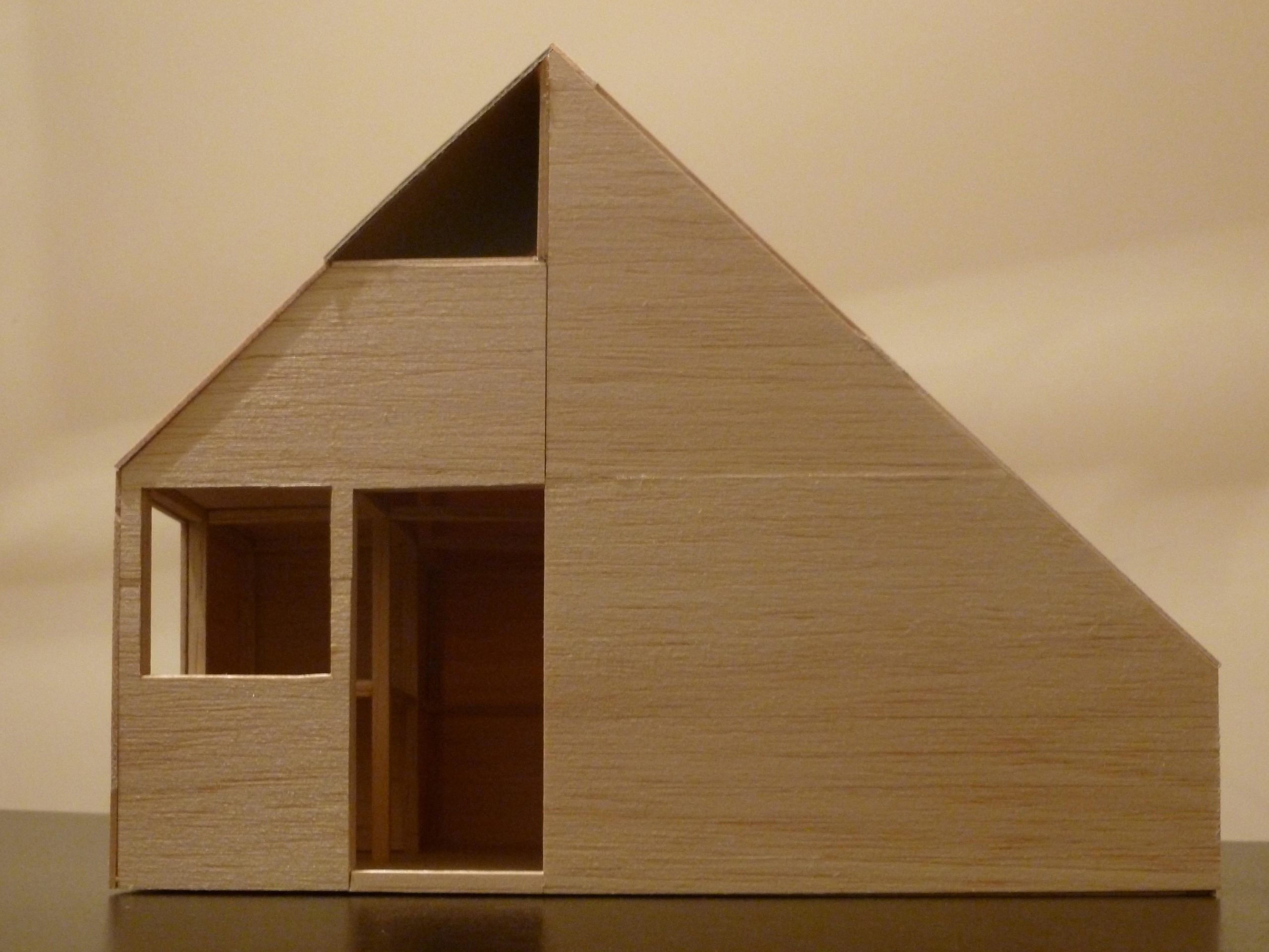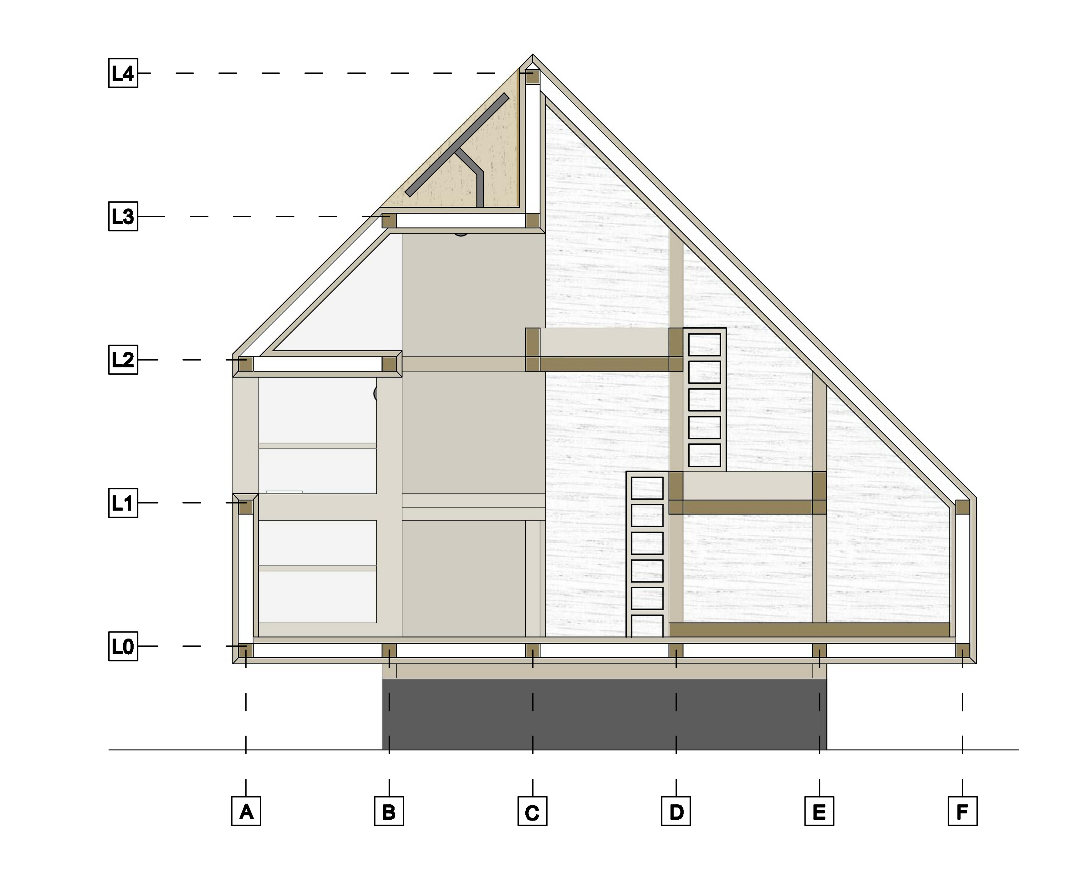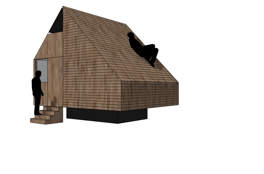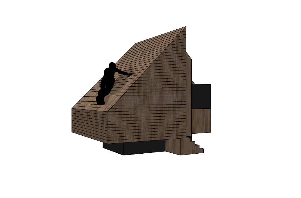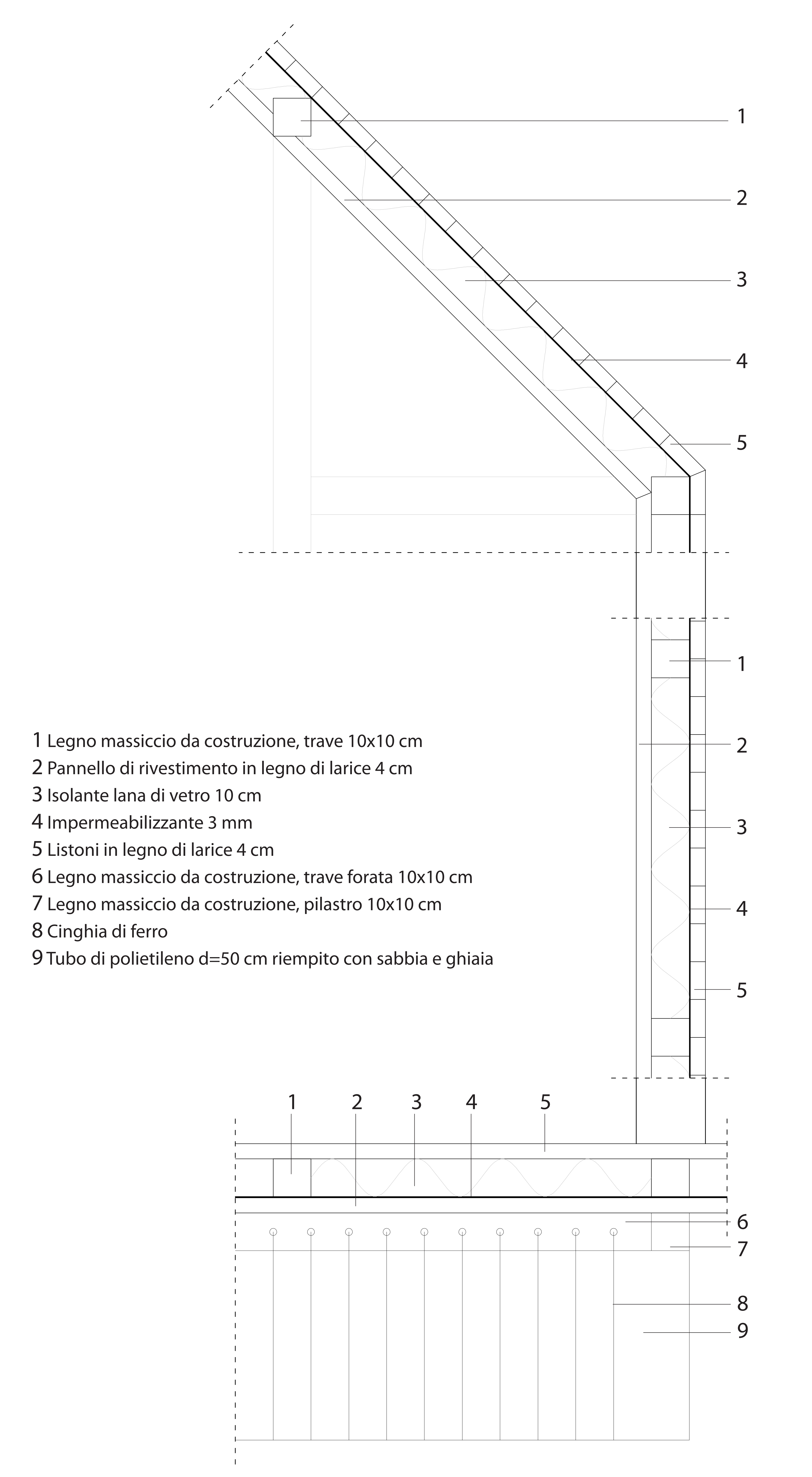 El proyecto toma inspiración y forma a partir de la fusión de tres imágenes: una carpa rodeada por un paisaje incontaminado, una casita en la montaña confortable y caliente y los picos nevados de forma irregular que hacen de fondo al paisaje. El resultado es un objeto de forma sencilla que recuerda el arquetipo de la casa, la forma se funde con la textura de la madera y se coloca en el paisaje sin invadirlo, como si fuera un trozo de roca que se ha destacado de la montaña.