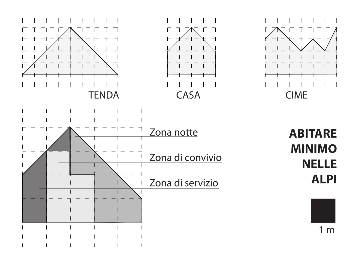 Abitare minimo es una propuesta de proyecto para un refugio mínimo localizado en los Alpes en senderos de altura superior a los 1500 m, alcanzables solo andando o en helicóptero.