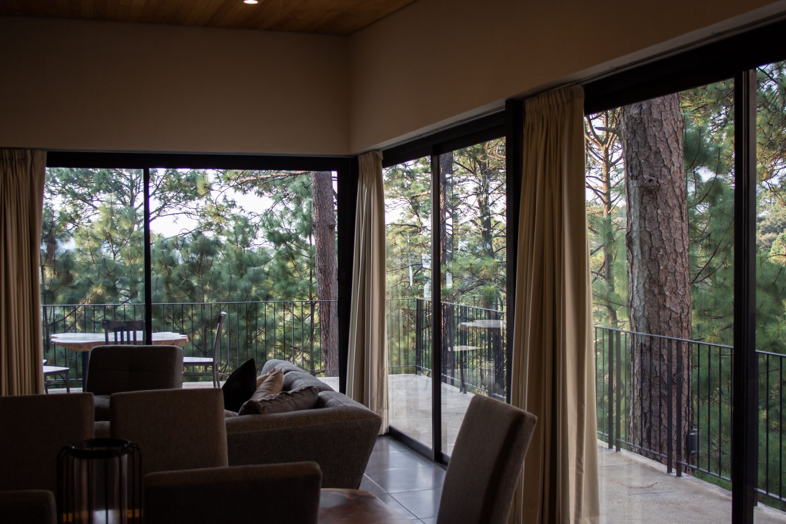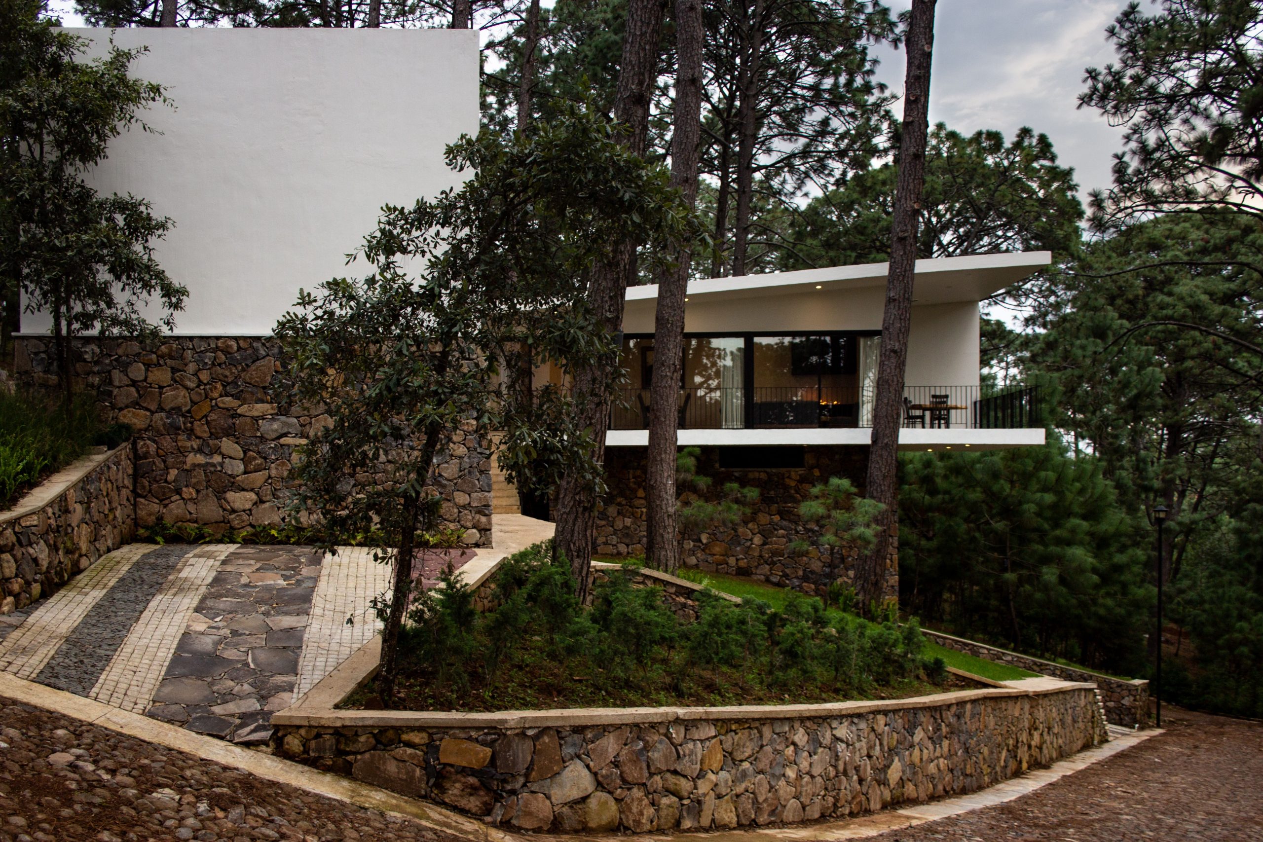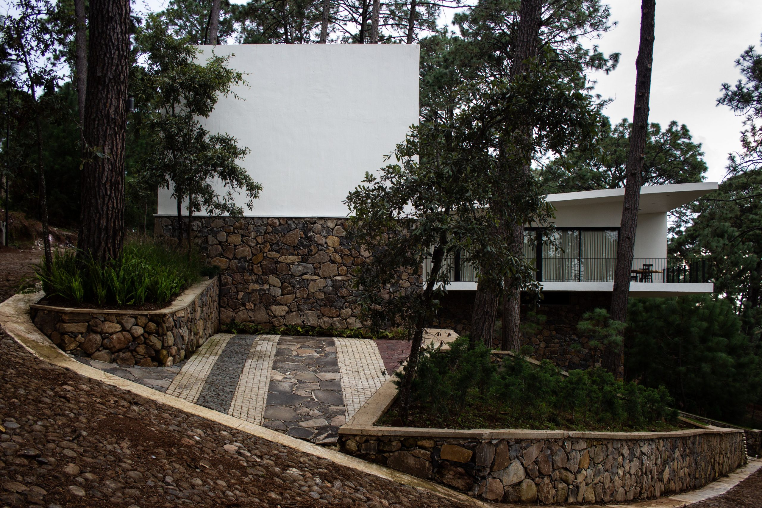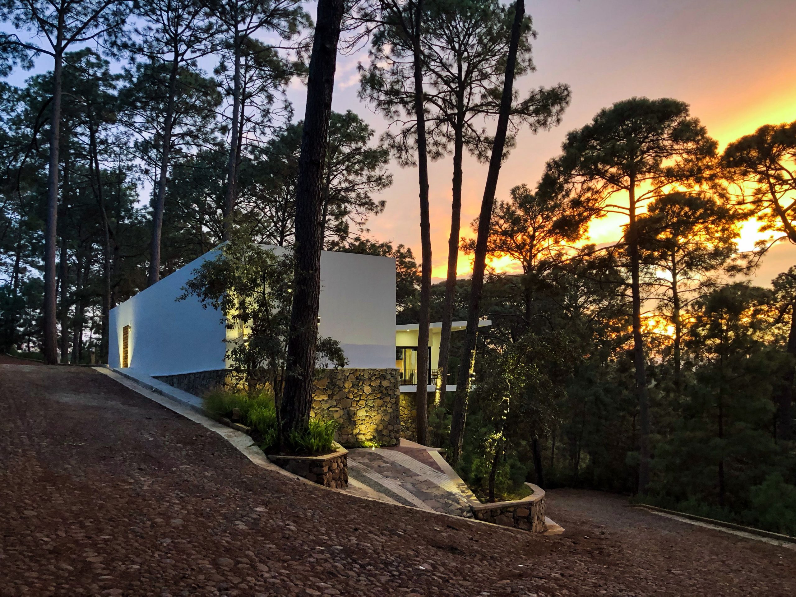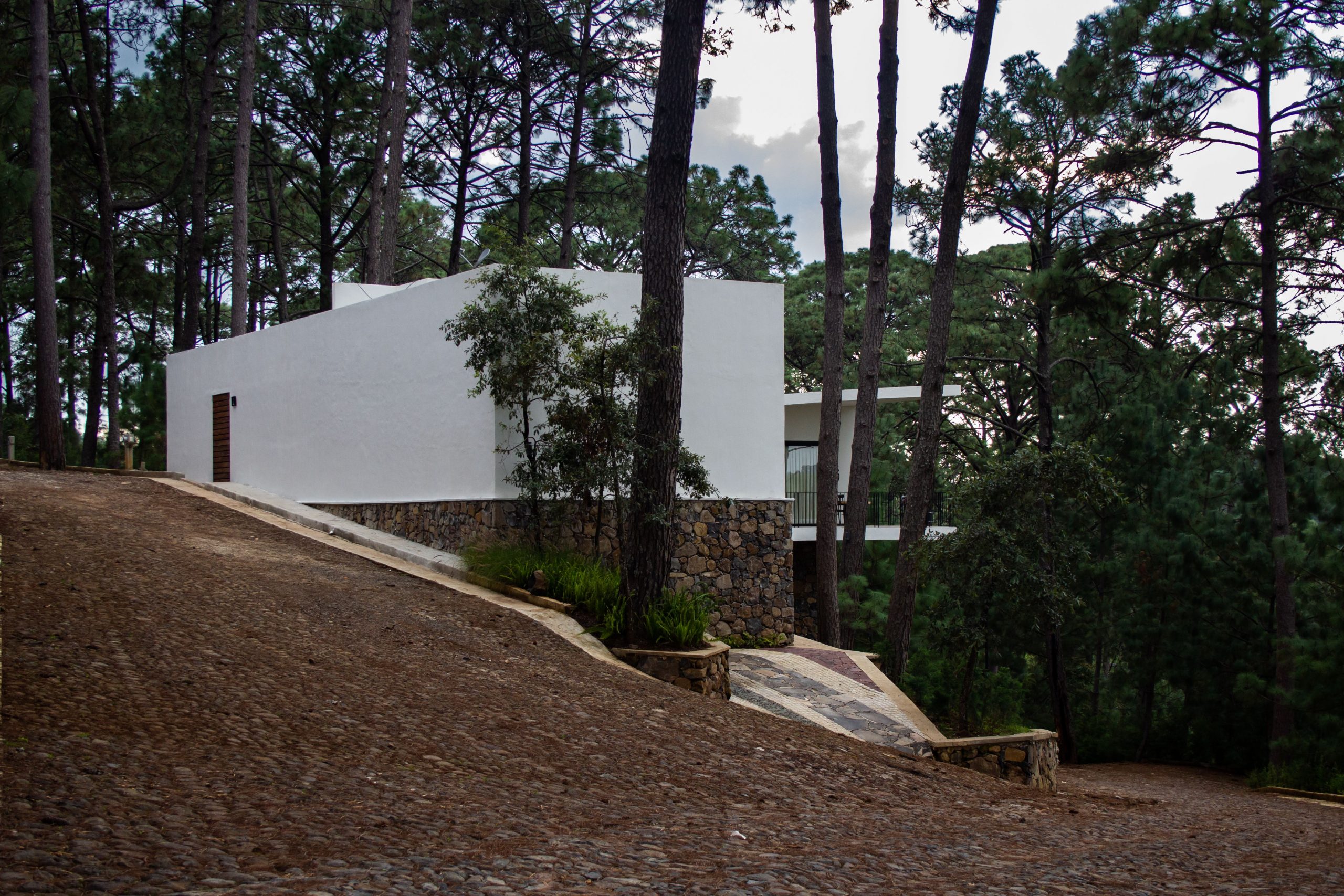 El proyecto se ubica a las afueras de Mazamitla en una zona baja boscosa dentro de un terreno triangular circundado por 2 calles con un desnivel de 9 metros.