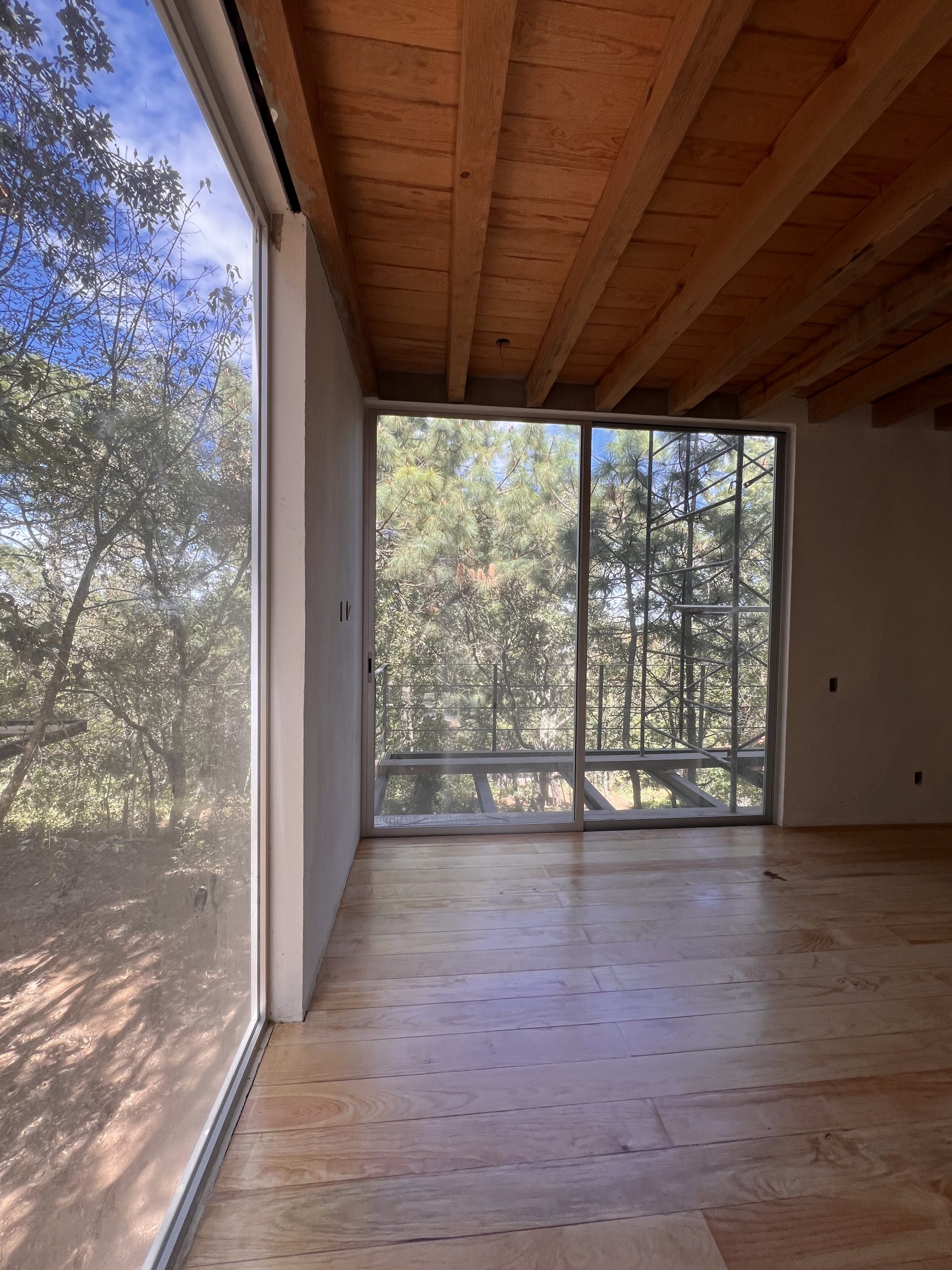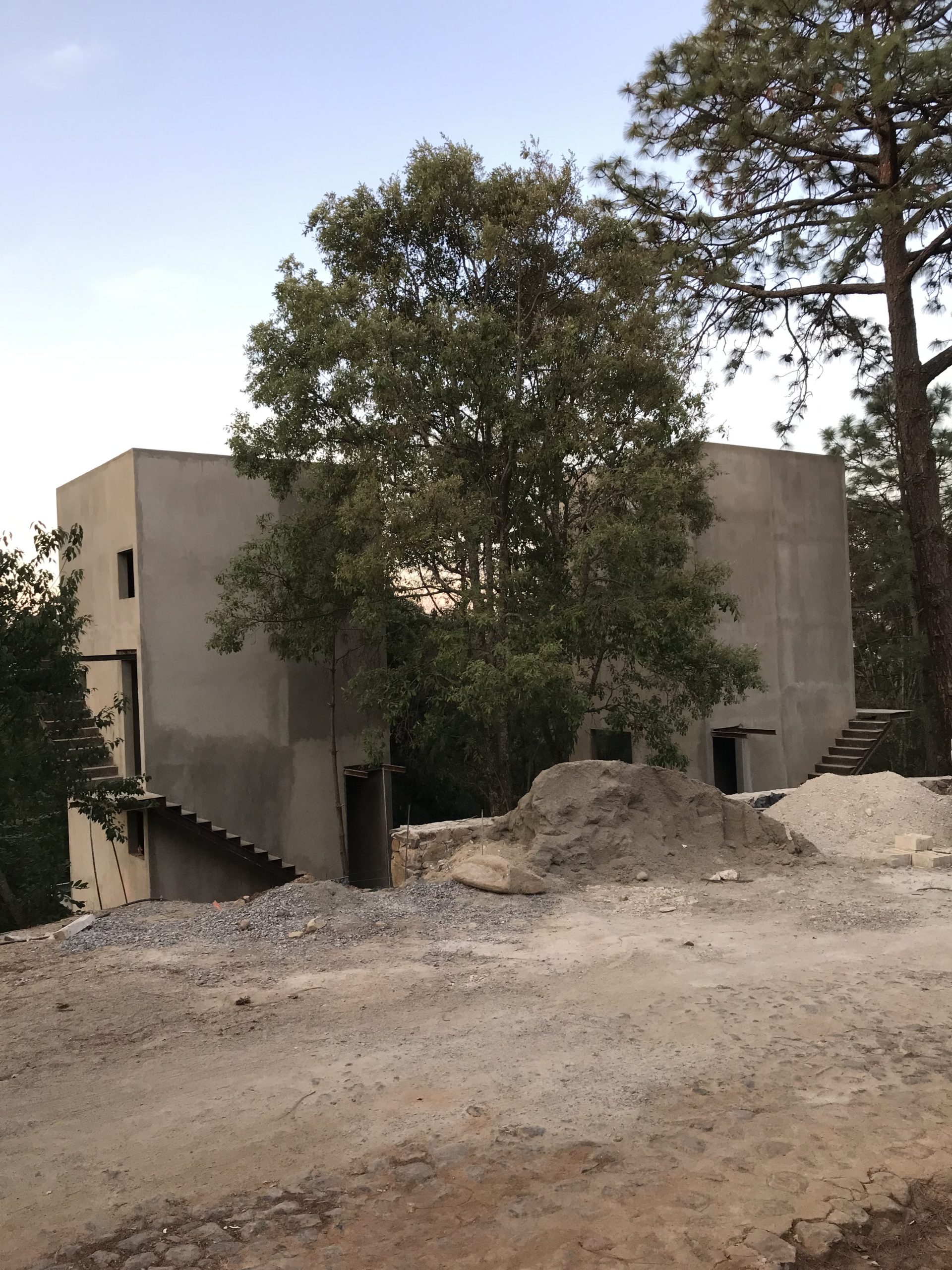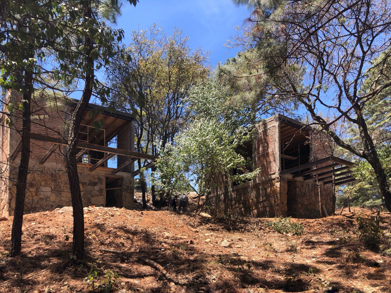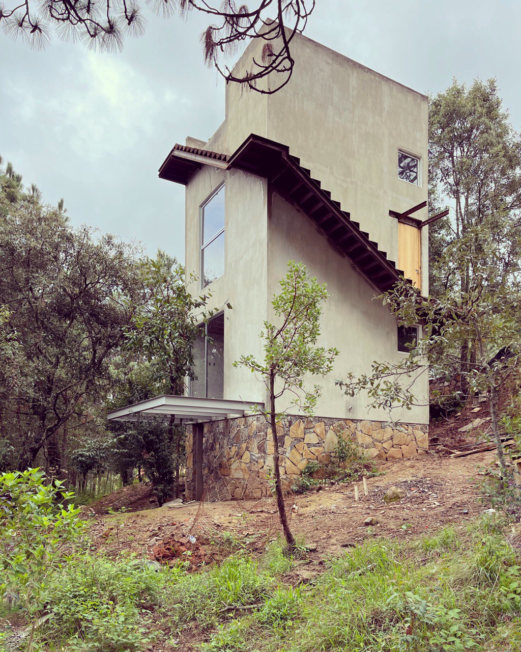 El proyecto se encuentra el las montañas de la sierra de Mazamitla, Jalisco, México, en un terreno 460 m2 rodeado de pinos y encinos de gran escala y con un desnivel importante cuyo único acceso es el punto mas alto del terreno. A partir de estas cualidades, surge la decisión de verticalizar la construcción, buscando la luz, las vistas y la simbiosis con el entorno.