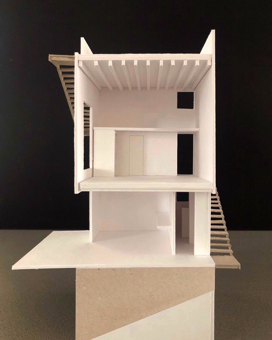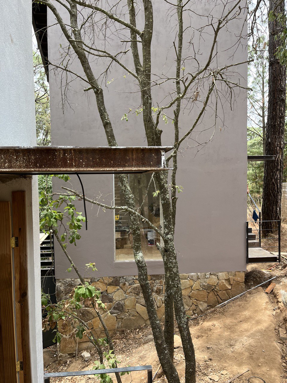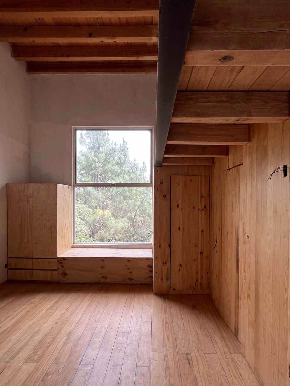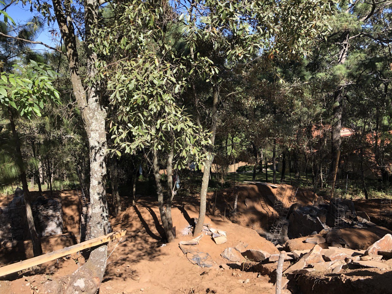 El proyecto se encuentra el las montañas de la sierra de Mazamitla, Jalisco, México, en un terreno 460 m2 rodeado de pinos y encinos de gran escala y con un desnivel importante cuyo único acceso es el punto mas alto del terreno. A partir de estas cualidades, surge la decisión de verticalizar la construcción, buscando la luz, las vistas y la simbiosis con el entorno.