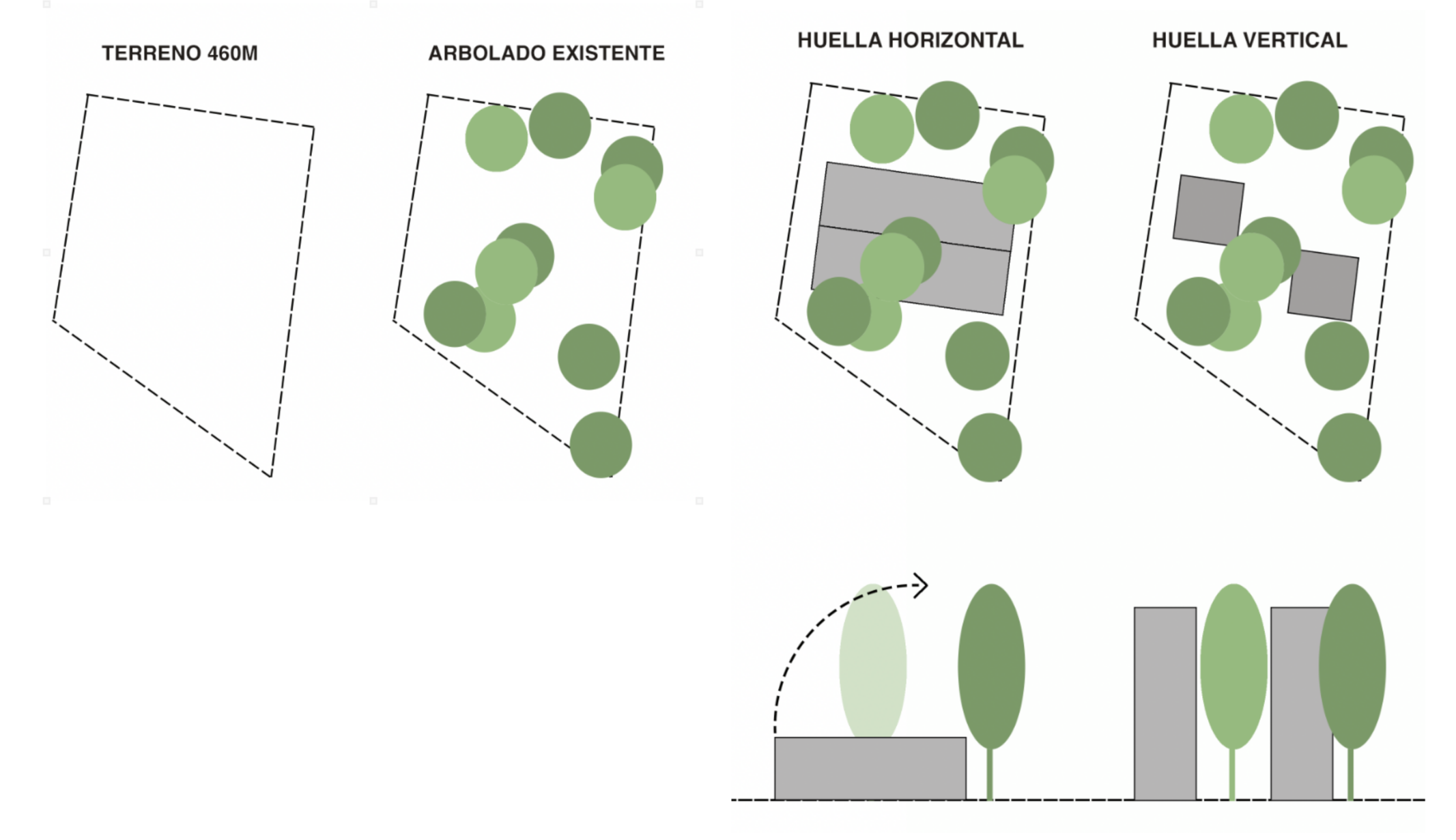 Dos habitáculos idénticos, con una huella mínima de 5 por 5 metros cada uno, se emplazan cuidadosamente en el terreno. Con apenas 50 m² de superficie construida, el diseño libera 410 m² de bosque, respetando cada árbol y la vegetación preexistente. Este gesto no solo preserva el paisaje, sino que lo exalta, dejando que la arquitectura sea un accidente entre los árboles.
